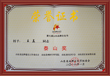 Awards: Mount Taishan Award of Shandong Brand Culture in 2016