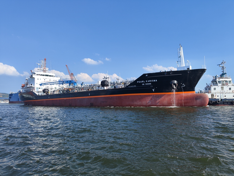 On August 20, 2024, Jinglu Shipyard successfully delivered the "PEARL KARISMA," a 7999DWT bunker vessel built for Singapore company Consort Bunkers. This vessel is the sixth in the 7999DWT series and the seventeenth delivered by Jinglu Shipyard this year, featuring a highly competitive green and energy-efficient design.