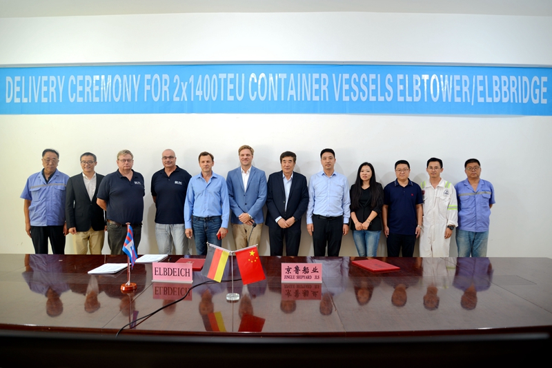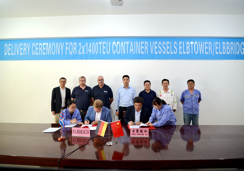 On September 9, 2024, Jinglu Shipyard successfully delivered the "ELBTOWER" and "ELBBRIDGE," two 1400TEU container ships built for Germany owner United Shipping Companies. These vessels represent the eighth and ninth in the series and the nineteenth and twentieth successful deliveries this year, laying a solid foundation for exceeding the 2024 operational targets.