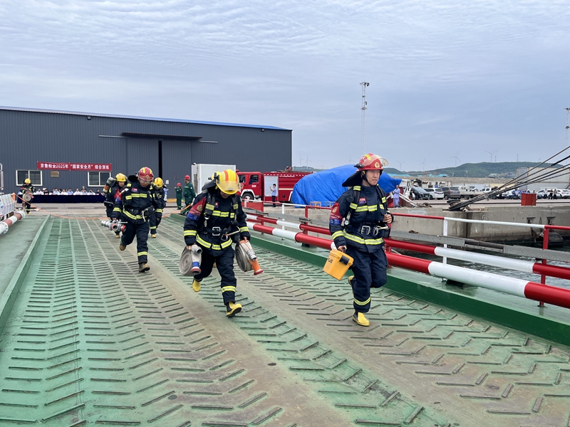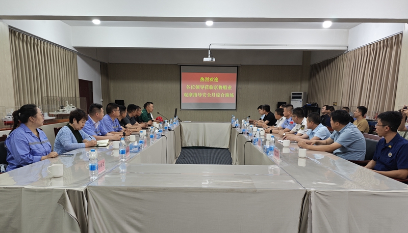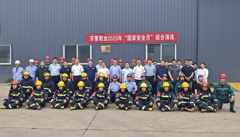 On the morning of 19 June 2025, Penglai Zhongbai Jinglu Ship Industry Co., Ltd. jointly organised a comprehensive drill with Penglai District Fire Rescue Brigade, Penglai Entry-Exit Border Inspection Station, and Beigou Health Centre at the company's wharf as part of the ‘National Work Safety Month’ campaign.