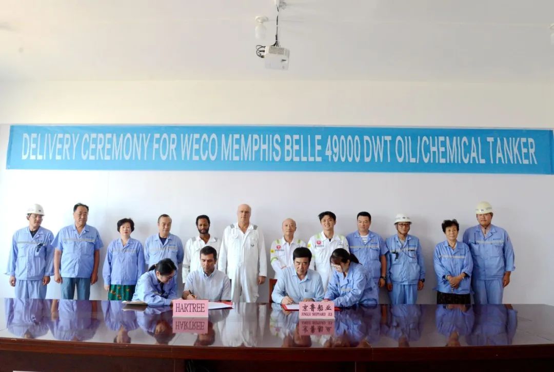 "On July 28, 2025, the MR product oil / chemical tanker 'WECO MEMPHIS BELLE' built by Jinglu shipyard for Hartree Partners was successfully delivered. Wang Hong, Party Secretary and General Manager of Jinglu Shipyard, and Panteleimon Sofiadis, the site manager for Hartree Partners, signed the delivery documents on behalf of both parties. This vessel is the first MR tanker designed by FKAB and also the first vessel delivered through the collaboration between Jinglu shipyard and FKAB Design.
